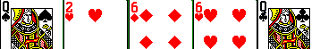 Two pairs of cards of same denomination. This combination may be completed with a Joker.